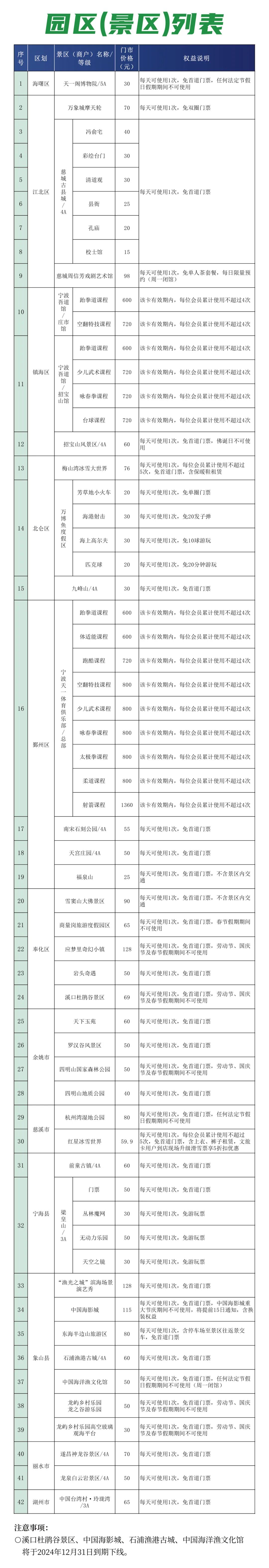 涵盖宁波42家优质景区