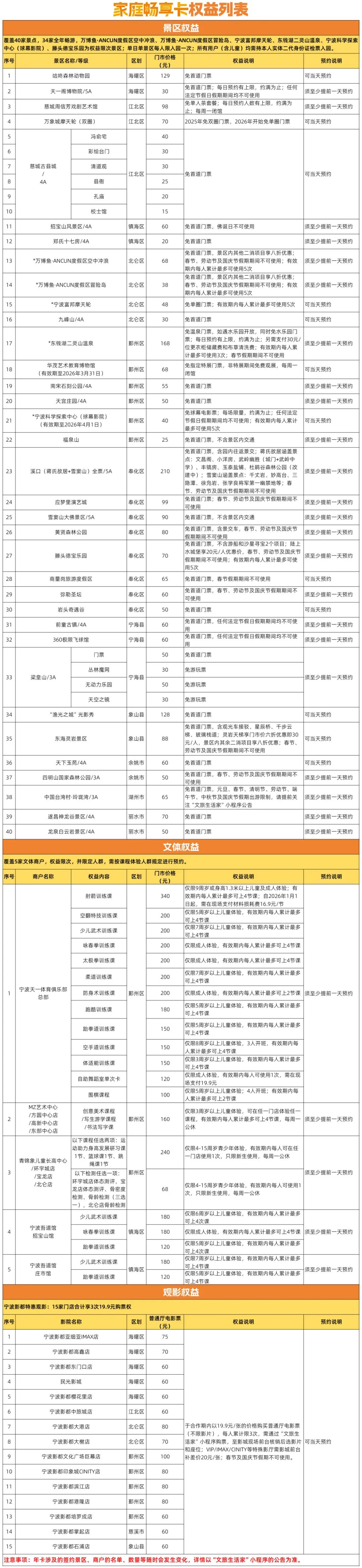 限量购买通道已开,手慢无!别再纠结周末带娃去哪玩了,一张卡搞定 40 家景区 + 5 大文体权益 + 15 家影城特惠,宁波人这波家门口的实惠旅行,火速冲!