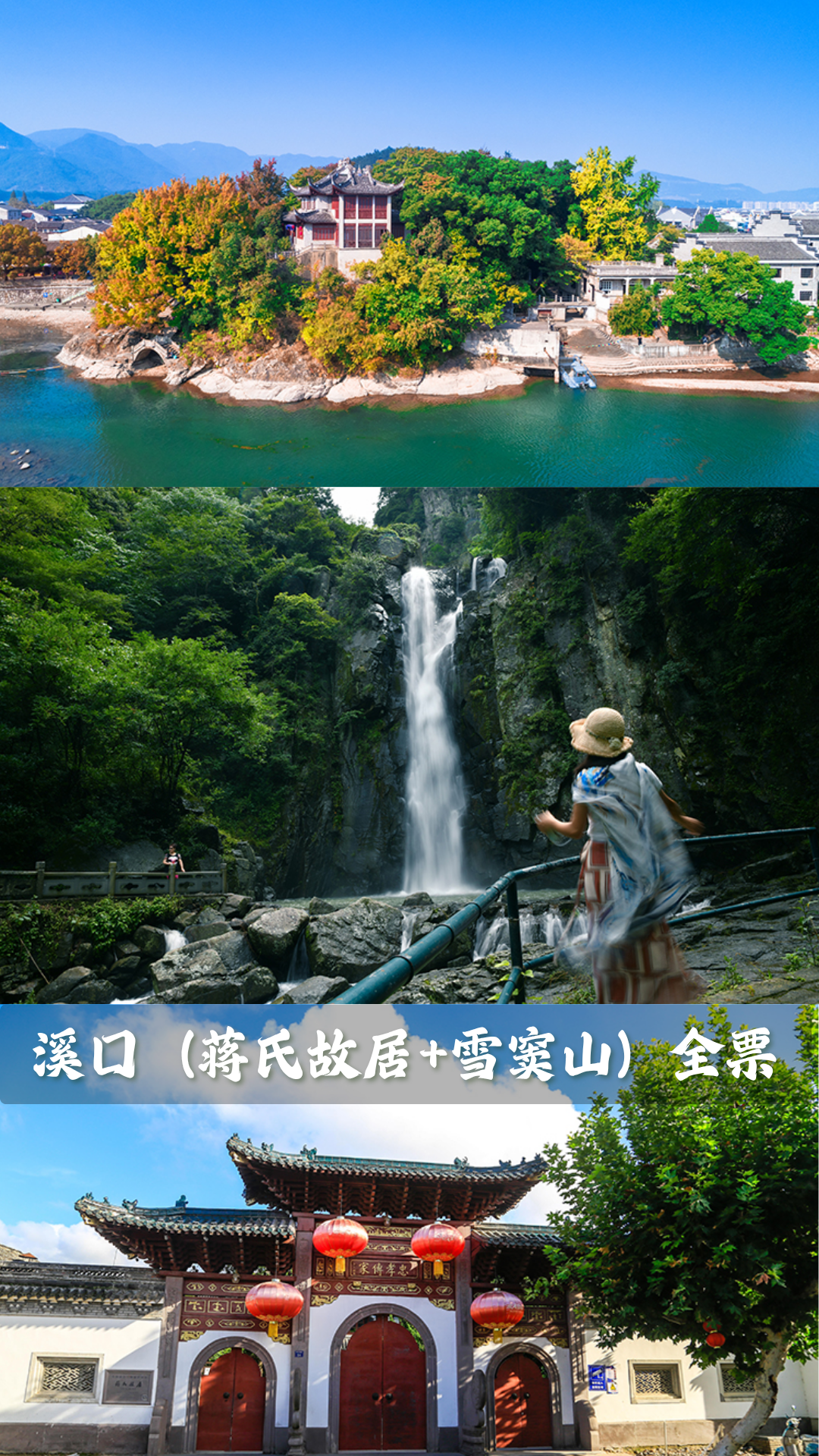 溪口全票包含:蒋氏故居——文昌阁、小洋房、武岭幽胜、丰镐房、玉泰盐铺、杜鹃谷森林公园,雪窦山——千丈岩、妙高台、三隐潭、徐凫岩、张学良将军第一幽禁地等。