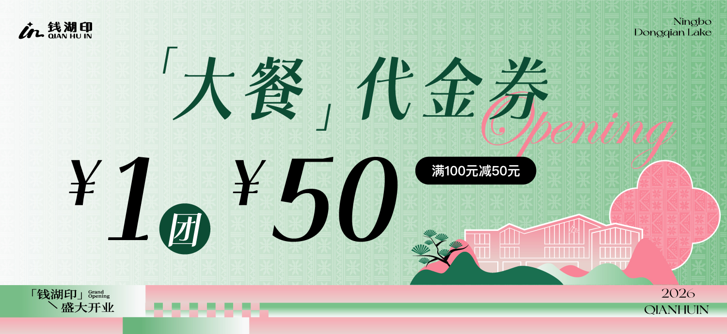 钱湖印 | 1元抢50元大餐代金券(满100元减50元)